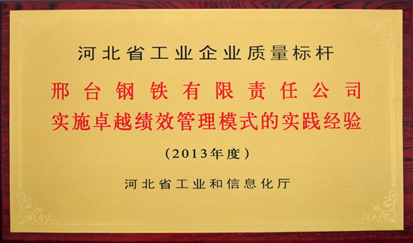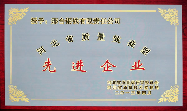 Xingtai Steel was awarded Hebei Province Quality Benefit Advanced Enterprise 2012.
