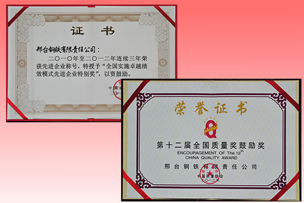 - Xingtai Steel was awarded the 12th National Quality Encour…