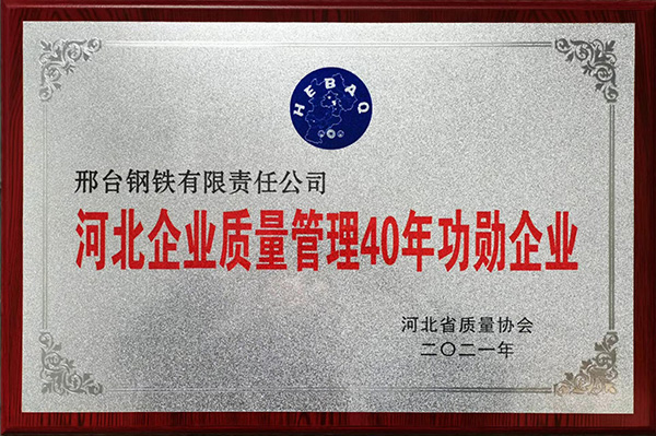 Xingtai Steel won the title of "Outstanding Hebei Enterprise for the 40-year Quality Management" by Hebei Association for Quality.