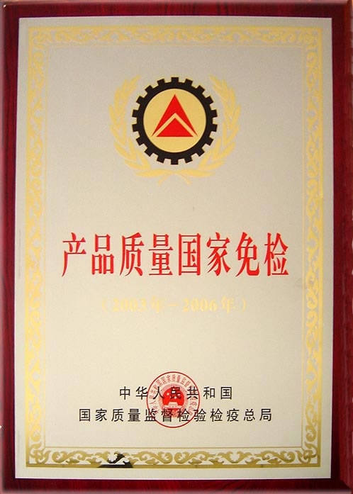2003-2006年產(chǎn)品質(zhì)量國(guó)家免檢證書(shū)