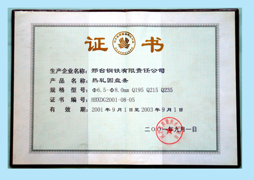 熱軋圓盤(pán)條獲河北省質(zhì)量信得過(guò)產(chǎn)品