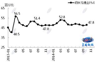 從10月份鋼鐵流通業(yè)整體運行情況看,下游訂單增加,鋼貿(mào)企業(yè)銷售量增加,鋼鐵流通市場活躍度略有好轉。從供給方面看,2014年10月上、中兩旬中鋼協(xié)預估重點鋼鐵企業(yè)粗鋼平均日產(chǎn)量約為178.15萬噸,較9月份重點鋼鐵企業(yè)粗鋼平均日產(chǎn)量178.91萬噸減少0.76萬噸。據(jù)蘭格鋼鐵供給預測模型粗略估算,10月份粗鋼產(chǎn)量預計在6840萬噸左右,粗鋼日產(chǎn)有所下降;且初步測算11月粗鋼日產(chǎn)將再次回升,但因11月中上旬北京召開2014年APEC會議,為保證北京地區(qū)空氣質(zhì)量,會議期間,北京周邊地區(qū)200公里內(nèi)的鋼鐵企業(yè)將采取停產(chǎn)、限產(chǎn)和施工工地停工措施,短期供給壓力將有所減緩,預計11月粗鋼日產(chǎn)回升幅度或有所縮小。從需求方面看,進入11月,隨著氣溫的逐漸下降,北方地區(qū)下游建筑工地施工逐漸減少,用鋼需求將明顯縮減。但受其他地區(qū)下游訂單增加,需求有所好轉的影響,11月鋼鐵市場需求景氣總體微升。從成本支撐方面看,受10月份鋼鐵原料鐵礦石及鋼坯價格先漲后跌的影響,鋼鐵成本總體趨升,對鋼價支撐力度有所增強。從宏觀方面看,前三季度國內(nèi)生產(chǎn)總值419908億元,同比增長7.4%。分季度看,一季度同比增長7.4%,二季度增長7.5%,三季度增長7.3%,經(jīng)濟增長有所放緩,將影響需求的釋放。綜合上述情況來看,11月份,雖鋼鐵需求景氣微升,鋼鐵成本支撐力度有所增強,但在鋼材供給壓力再次增加的情況下,總體判斷11月鋼價或將窄幅震蕩。