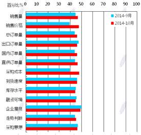 蘭格鋼鐵信息研究中心統(tǒng)計發(fā)布2014年10月鋼鐵流通業(yè)PMI總指數(shù)為47.8,環(huán)比微升0.6個百分點(見圖1),顯示鋼鐵流通市場活躍度略有好轉。從各項分指數(shù)看,10月份鋼鋼鐵流通業(yè)PMI調(diào)查的10項分指數(shù)5升5降。其中,企業(yè)銷量增加,下游訂單增加,但企業(yè)對后市較為謹慎,采購意愿未增(見圖2)??傮w判斷11月鋼鐵流通市場需求景氣微升。
