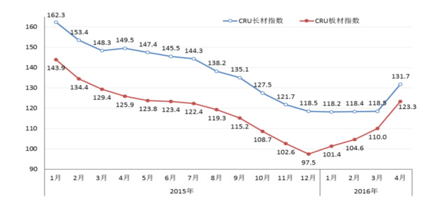 CSPI國內(nèi)長材和板材價(jià)格指數(shù)走勢圖