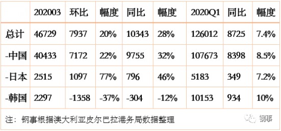 總的來(lái)看,澳大利亞的鐵礦石出口目前并未受到疫情的影響,并且在快速增加,今年前2個(gè)月,黑德蘭港的出口量同比減少了161.8萬(wàn)噸,降幅為2%,而到3月底時(shí)實(shí)現(xiàn)了7.4%的同比正增長(zhǎng)。另一方面,韓國(guó)自黑德蘭港進(jìn)口的鐵礦石占比較大,3月份數(shù)據(jù)的大幅下滑可能反映出其鋼鐵生產(chǎn)強(qiáng)度的下降,減少了對(duì)鐵礦石的需求。日本則還需要進(jìn)一步的數(shù)據(jù)來(lái)觀察和分析。今年前2個(gè)月,韓國(guó)粗鋼產(chǎn)量減少3.4%,鐵礦石進(jìn)口量增加了1.4%,日本粗鋼產(chǎn)量增加1.7%,礦石進(jìn)口量則減少了1.8%;總體變化都不大,3月份或許是個(gè)開(kāi)始。(中國(guó)冶金報(bào))