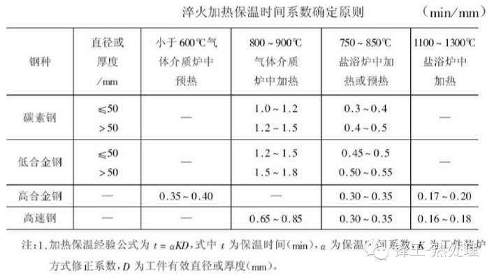 傳統(tǒng)的碳素鋼淬火加熱時(shí)間的計(jì)算公式:T=K•αD
