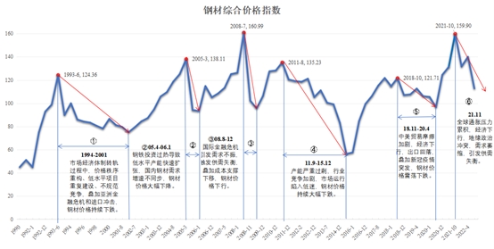 圖1 1990年以來我國鋼材價(jià)格綜合指數(shù)變化趨勢