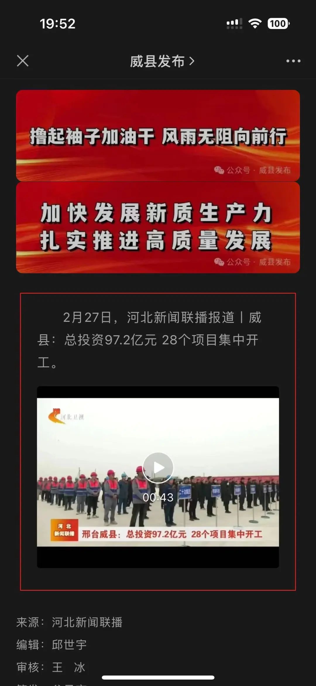 去年以來,威縣錨定抓招商、上項(xiàng)目、優(yōu)環(huán)境,成功引進(jìn)了一批大好高優(yōu)項(xiàng)目,有力推動(dòng)了縣域經(jīng)濟(jì)穩(wěn)健高質(zhì)量發(fā)展。去年簽約項(xiàng)目87個(gè)、總投資120億元,引進(jìn)央企子公司6家,邢鋼搬遷項(xiàng)目開工建設(shè)、吉利新能源商用車整車下線、春立正達(dá)醫(yī)療器械等重大項(xiàng)目投產(chǎn),高新區(qū)成功擴(kuò)區(qū),新增可利用土地1.3萬畝,縣域科技創(chuàng)新能力評(píng)價(jià)躍升為全省A類。