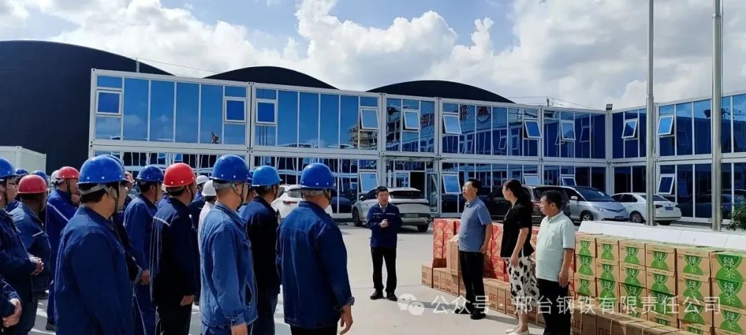 新廠房里,起重機下,工人們正一絲不茍地進行設備安裝、調(diào)試。8月22日,邢臺市總工會黨組成員、經(jīng)審委主任龐蘇、威縣總工會主席岳朝軒等一行來到邢鋼搬遷項目建設工地,為連日來被潮熱天氣“烤驗”的建設者們送來“清涼”大禮包和真摯的慰問。公司副總經(jīng)理馬保良出席了“送清涼”慰問品發(fā)放儀式。